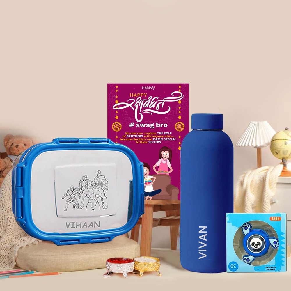 Get personalised lunch boxes with name and cartoon for kids. The veigo brand jumbo steel lunch box comes with small vegetable box along with spoon and fork, all personalised with name and cartoon. Premium food grade quality steel lunch box is perfect for kids carrying to school as well its a perfect gift for kids. This personalised combo can be used as return favours on parties etc.