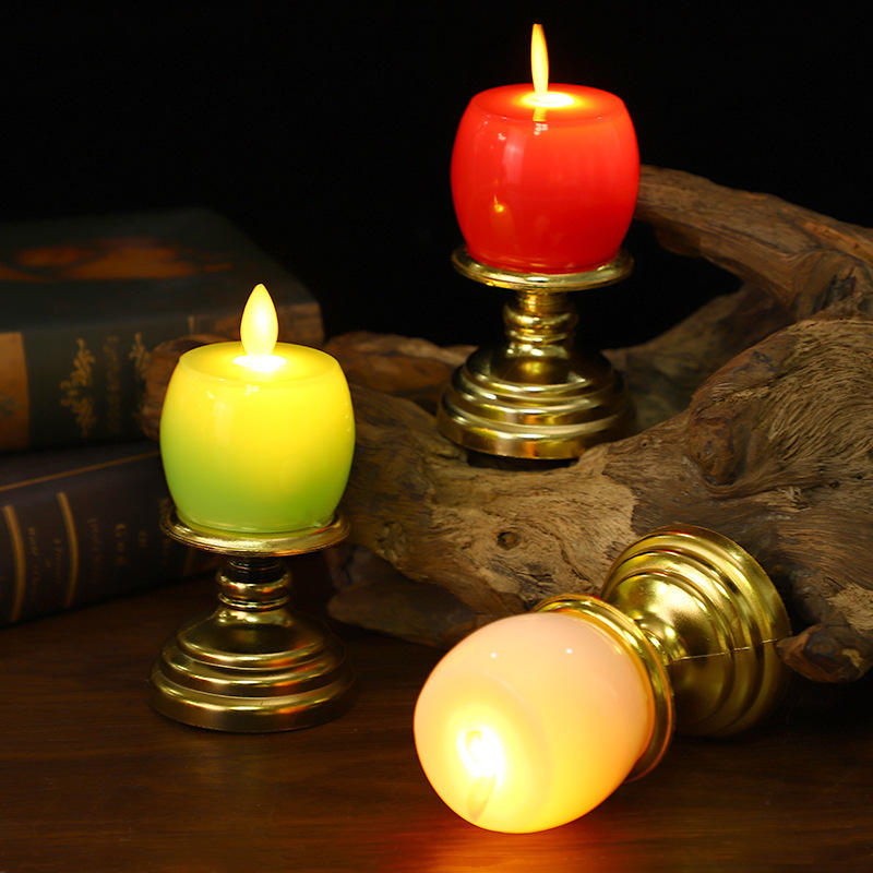 Led Flickering Candle With Golden Stand