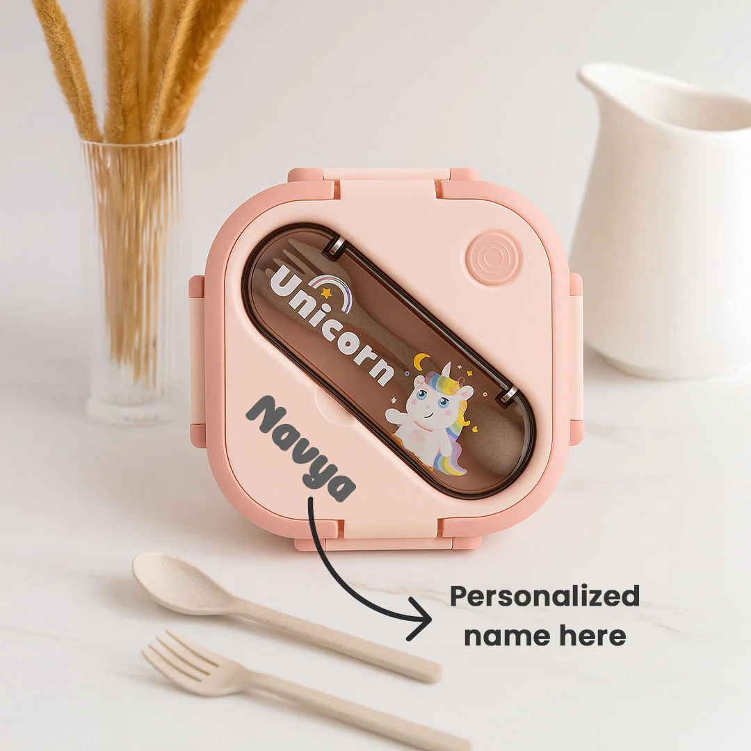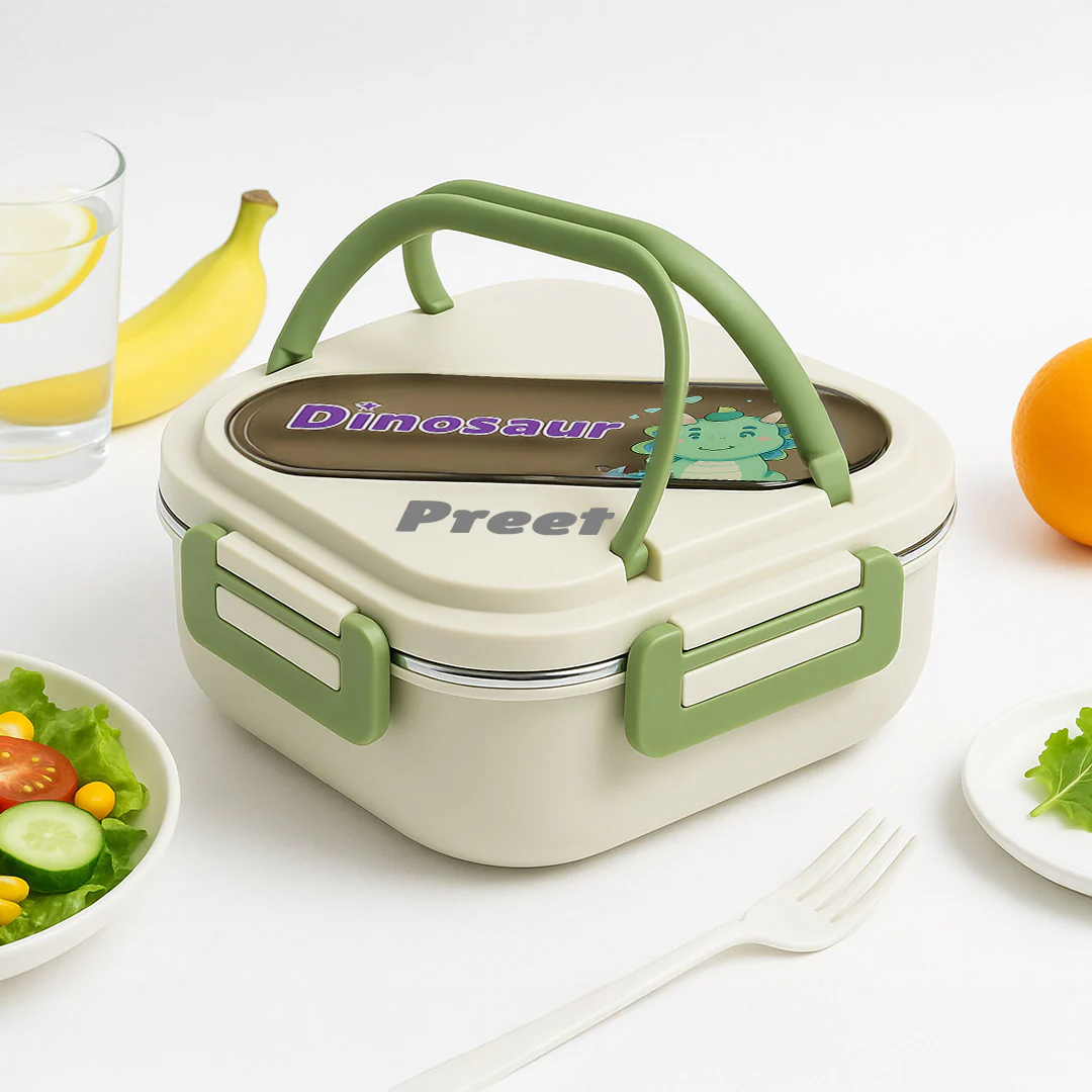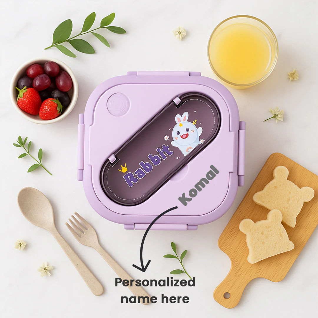 The Personalized Cartoon Lunchbox is a fun and practical mealtime companion for kids. Designed with custom name printing on the lid, it comes in three adorable character themes – Dinosaur (Green), Rabbit (Purple), and Unicorn (Pink) etc.. The high-quality, removable stainless steel tray is food-grade and divided into three sections to keep meals fresh and neatly separated. Its durable, impact-resistant BPA-free outer shell ensures long-lasting use, while the leak-resistant lid with secure locks prevents spills. Complete with a detachable fork and spoon, this lunchbox is lightweight, easy to clean, and perfect for school, picnics, or gifting.