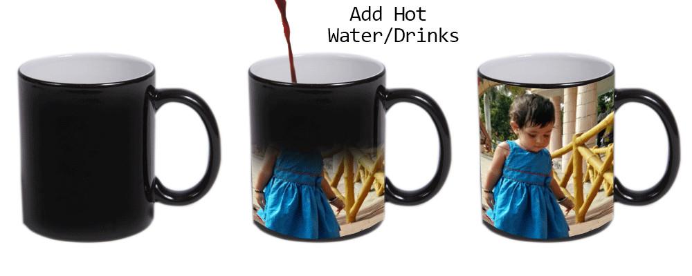 Magic mug comes with your pictures but are visible only when hot water or hot drink is poured . Quantity is 350 ml. Number of pictures required are 3 . Check out the video to see the magic.
