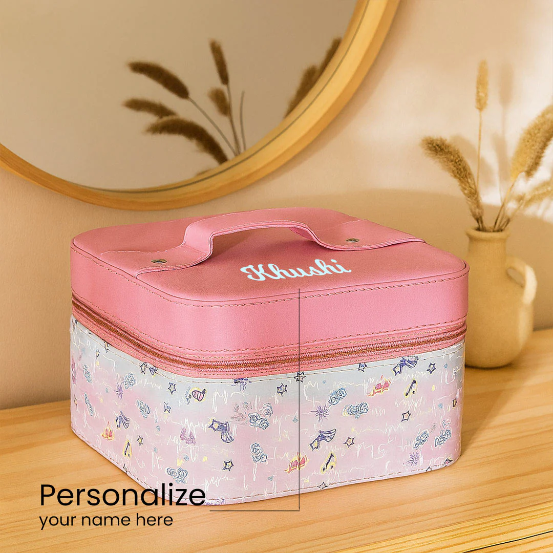 This personalized jewellery storage box combines style, functionality, and elegance, making it perfect for both personal use and gifting. Crafted with a durable leatherette exterior and a beautiful patterned fabric base, it features a soft velvet lining to protect jewellery from scratches and tarnish. The spacious double-layer design offers multiple compartments to neatly store necklaces, earrings, bangles, and rings, while the secure zipper closure ensures everything stays in place during travel. Lightweight and compact, it is travel-friendly and can be customized with your name printed on the lid for a personal touch. Ideal for birthdays, anniversaries, weddings, and festive occasions, this jewellery organizer is both practical and luxurious.